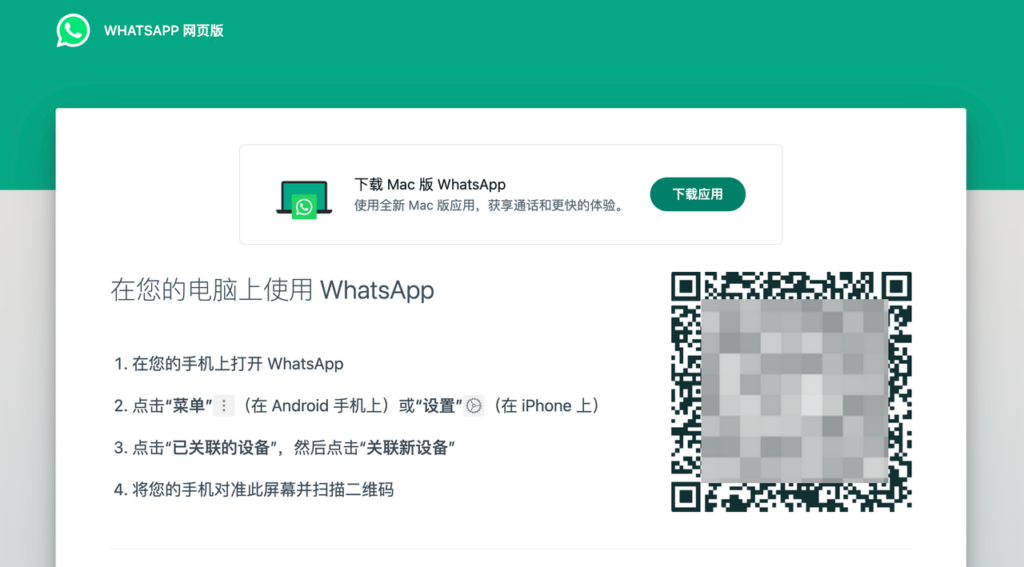 网页版地址推荐使用: whatsapp网页登录