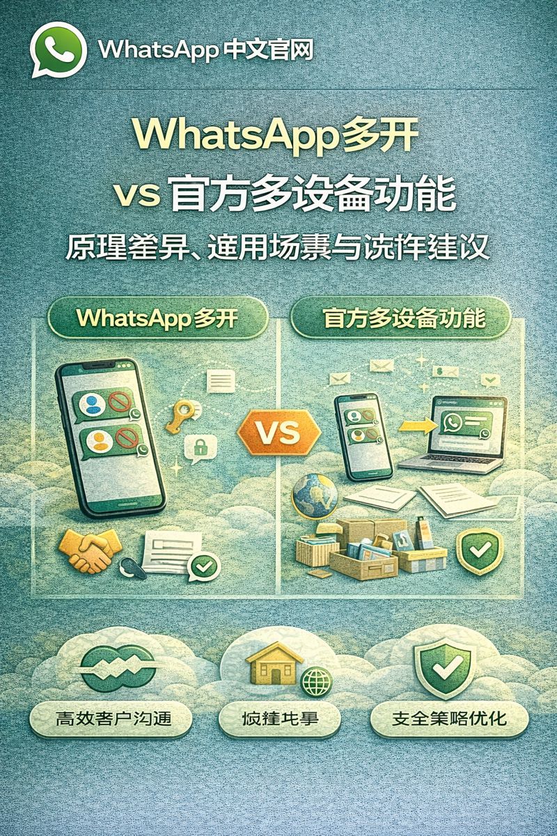 本篇由 WhatsApp网页版 整理,将从原理、功能定位、风险边界以及实际应用角度,系统对比 WhatsApp 多开与官方多设备功能,帮助你在实际使用中做出正确选择。