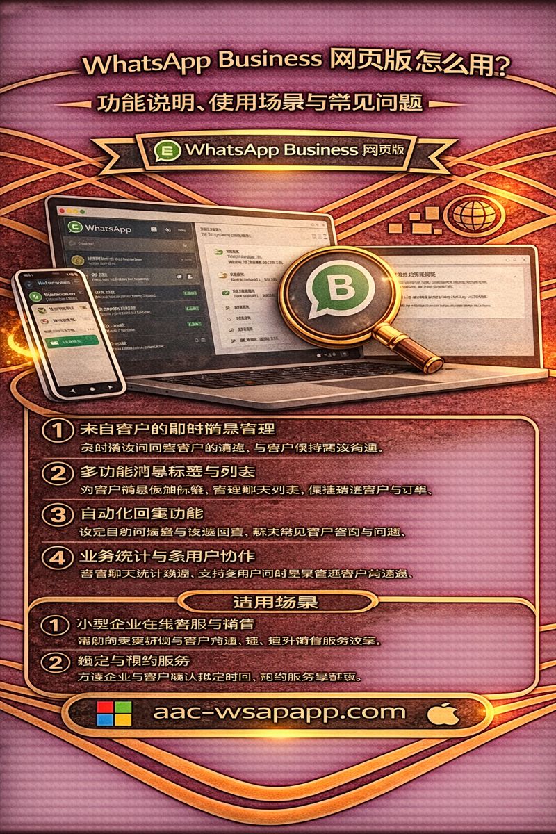 本文将围绕 Whatsapp Business 网页版, 从基础概念、使用方式、功能特点到适用场景, 进行一次系统、清晰的说明。