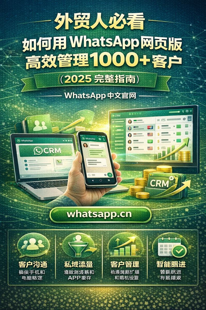 WhatsApp 已成为 2025 年最重要的外贸沟通工具之一。从询盘、产品发送、价格谈判,到售后维护,几乎所有环节都可以在 WhatsApp 中完成。然而,当客户数量超过 300、500,甚至 1000+ 时,传统的手机端操作会变得极其低效——对话列表太长、无法快速筛选、重复回复耗时巨大。