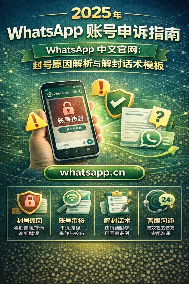 本篇由 WhatsApp网页版 整理,内容包含 2025 最新封号机制解析、解除封号流程说明、五大类别申诉话术(中英文),以及账号安全操作准则。无论你是外贸业务员、卖家客服、企业用户,或只是普通聊天账号,只要遇到封号问题,都可以按照本文逐步解决。